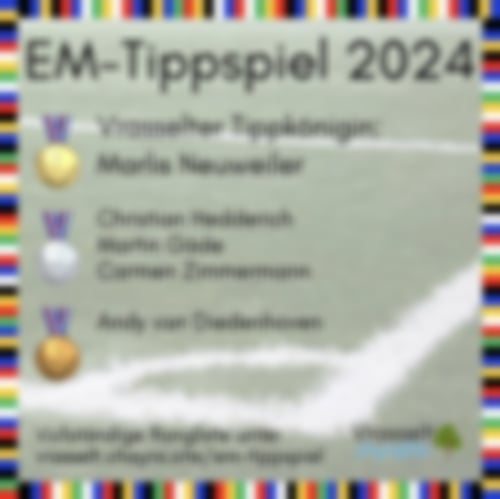 In unserem EM-Tippspiel hast Du endlich die Chance, Dein mühsam angeeignetes Fußball-Halbwissen in der Community unter Beweis zu stellen. Die Regeln sind einfach: Der Ball ist rund, ein Spiel dauert 90 Minuten – und wer schlussendlich am besten tippt, wird zum Vrasselter EM-Tippkönig gekrönt! Außerdem hast du die Chance, chayns Gutscheine zu gewinnen.